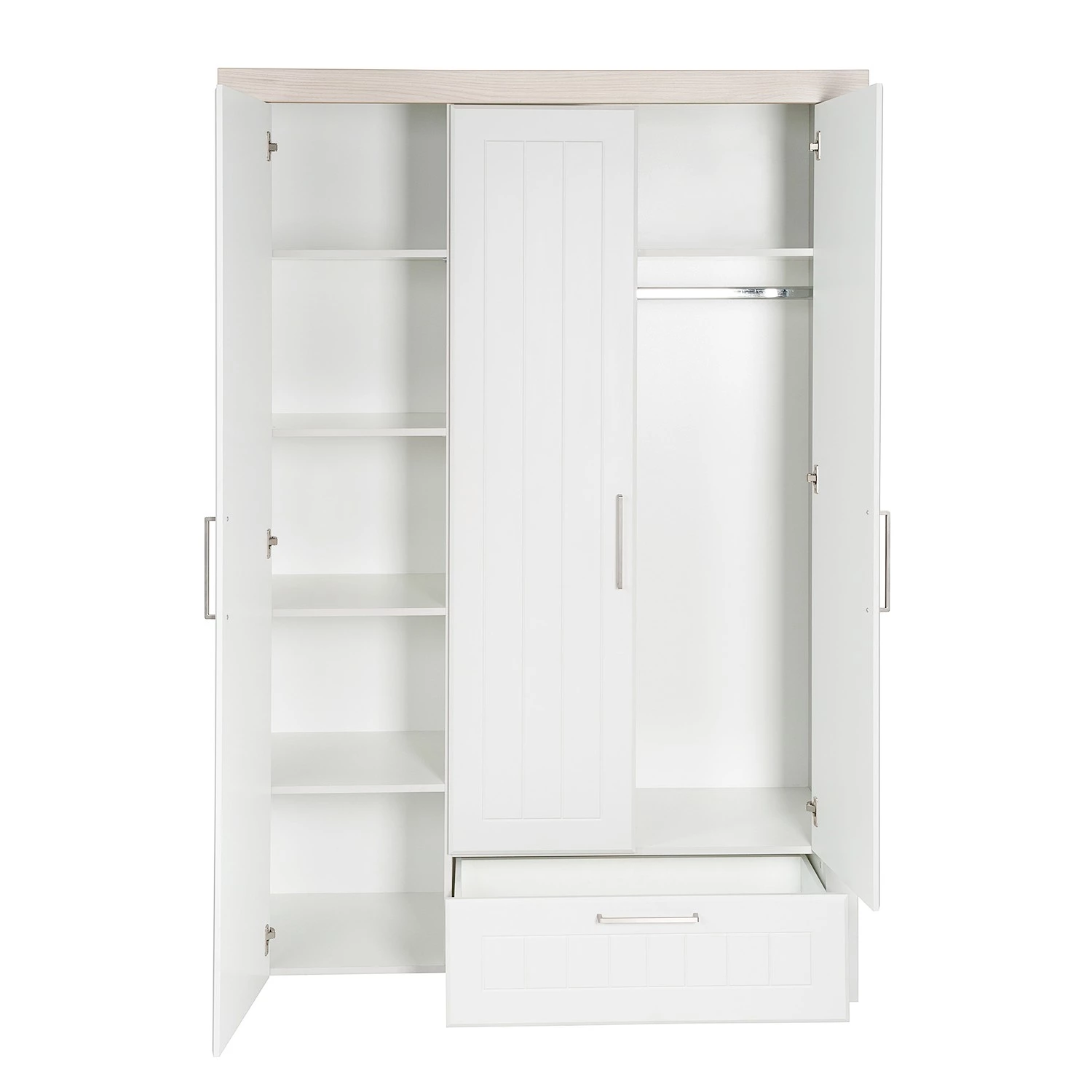 - Contenu de la livraison : Armoire 3 portes, 1 tiroir, 1 tringle à vêtements, 5 étagères, H x Lx P : 199 x 138,5 x 52,5cm